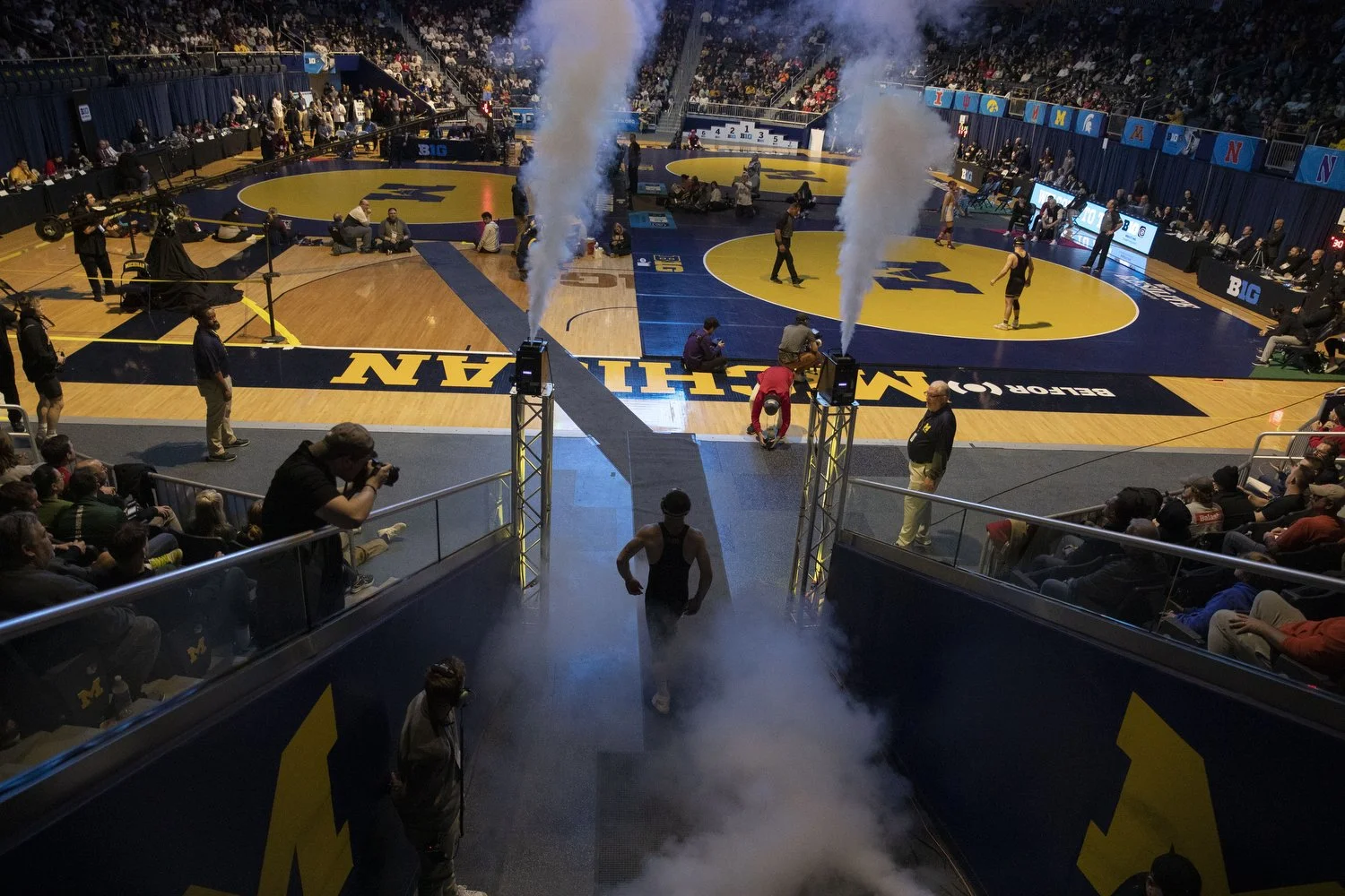 No. 3 seeded 165-pound Iowa's Patrick Kennedy walks out during session four of the Big Ten Wrestling Championships at Crisler Center in Ann Arbor, Mich. on Saturday, March. 4, 2023. (Daniel McGregor Huyer/The Daily Iowan)