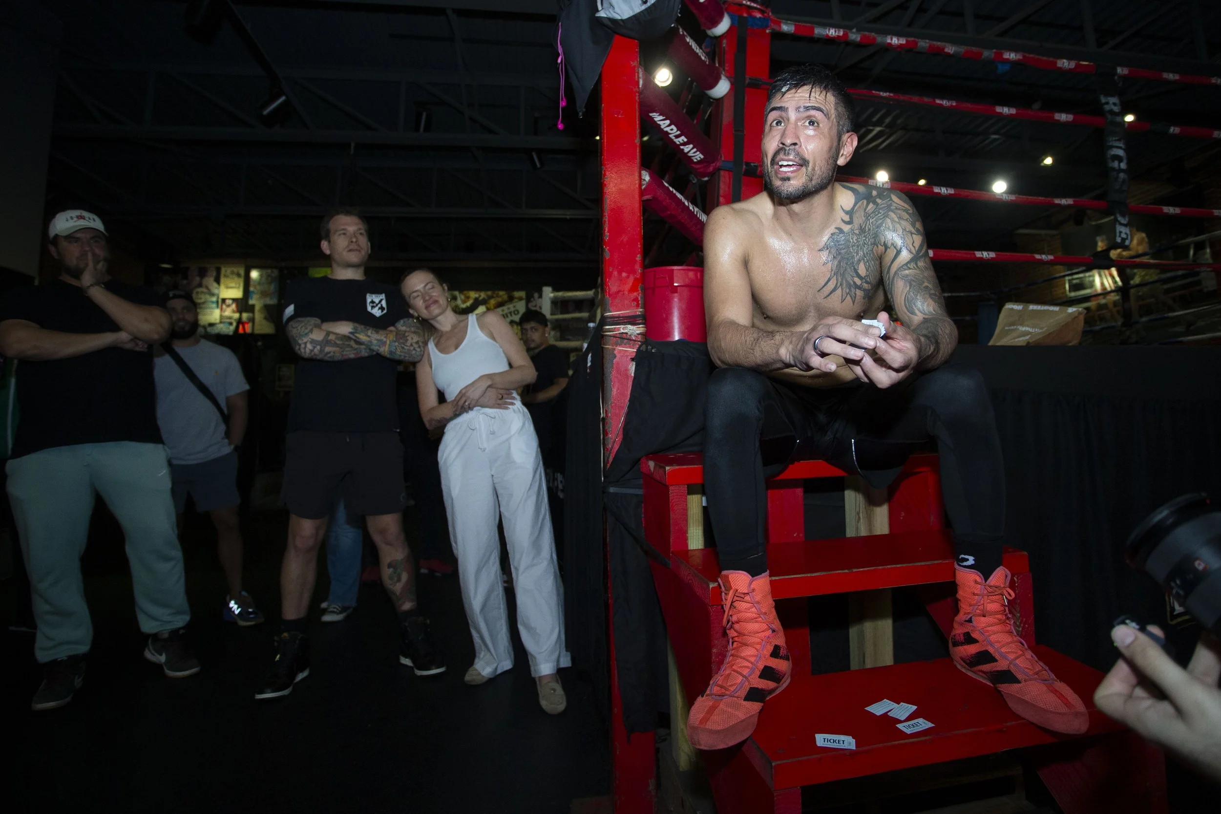 Jared King reacts after defeating Zedric Stephenson in a heavyweight match during Victory III: The Perfect Storm on Saturday, April 12, 2025 at the Bomb Factory in Dallas, Texas. (Daniel McGregor-Huyer/Victory Boxing League)