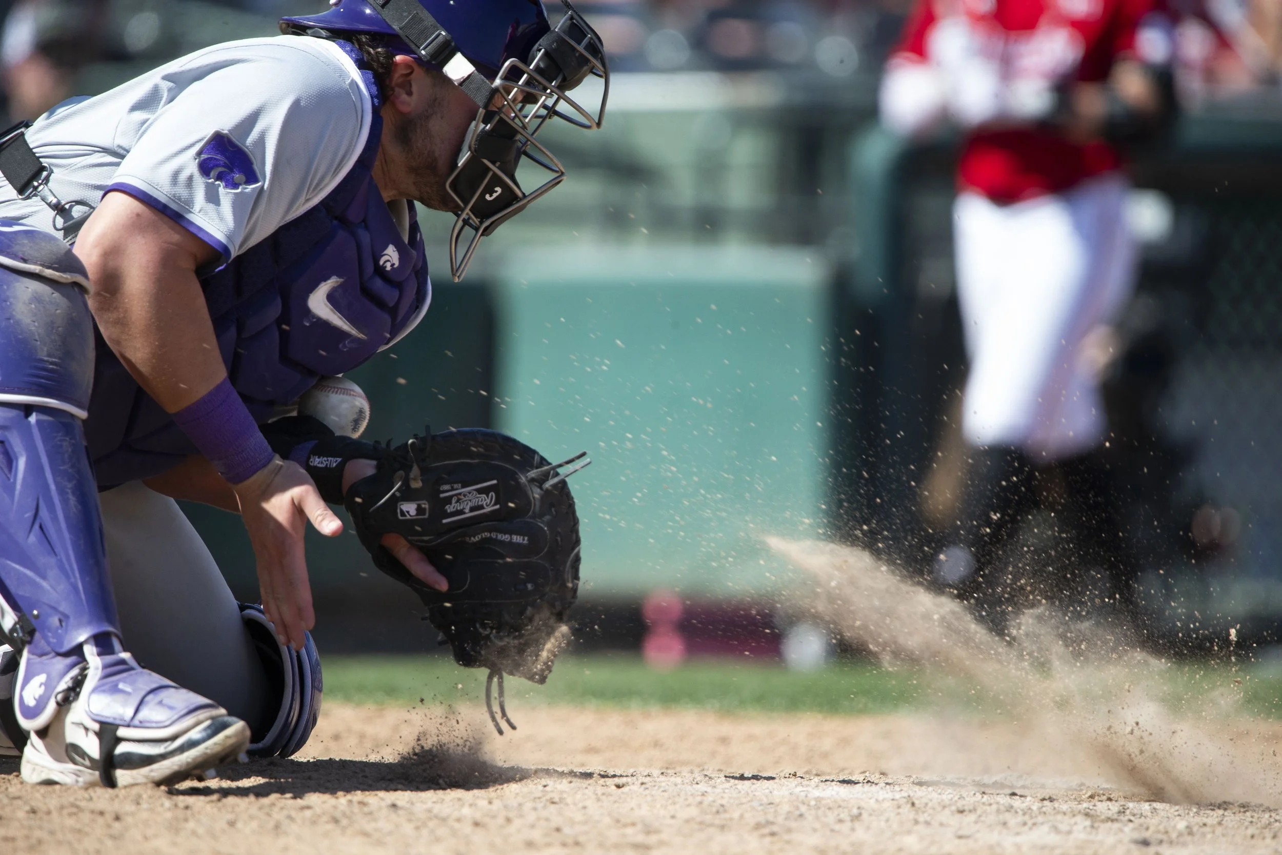 Kansas State catcher BEAR MADLIAK (3) catches a ball in the dirt during a game between Kansas State and Nebraska at the Frisco Baseball Classic at Riders Fields on Sunday, March 3, 2025 in Frisco, Texas. The Wildcats defeated the Cornhuskers, 9-6. (Daniel McGregor-Huyer/Zuma Press Wire)