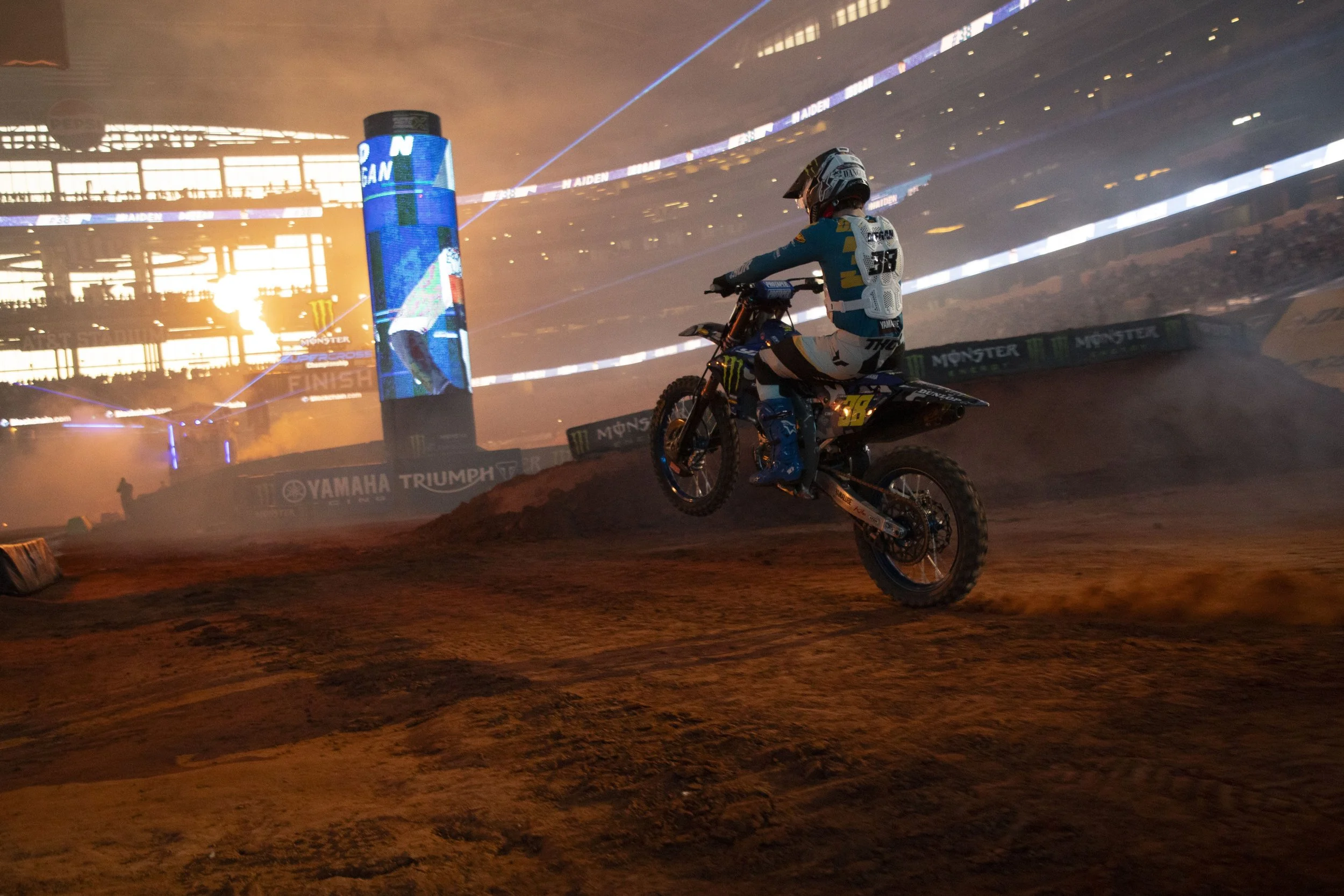Haiden Deegan (38) is introduced before the Monster Energy AMA Supercross Championships at AT&T Stadium on Saturday, February 22, 2025 in Arlington, Texas. (Daniel McGregor-Huyer/Zuma Press Wire)