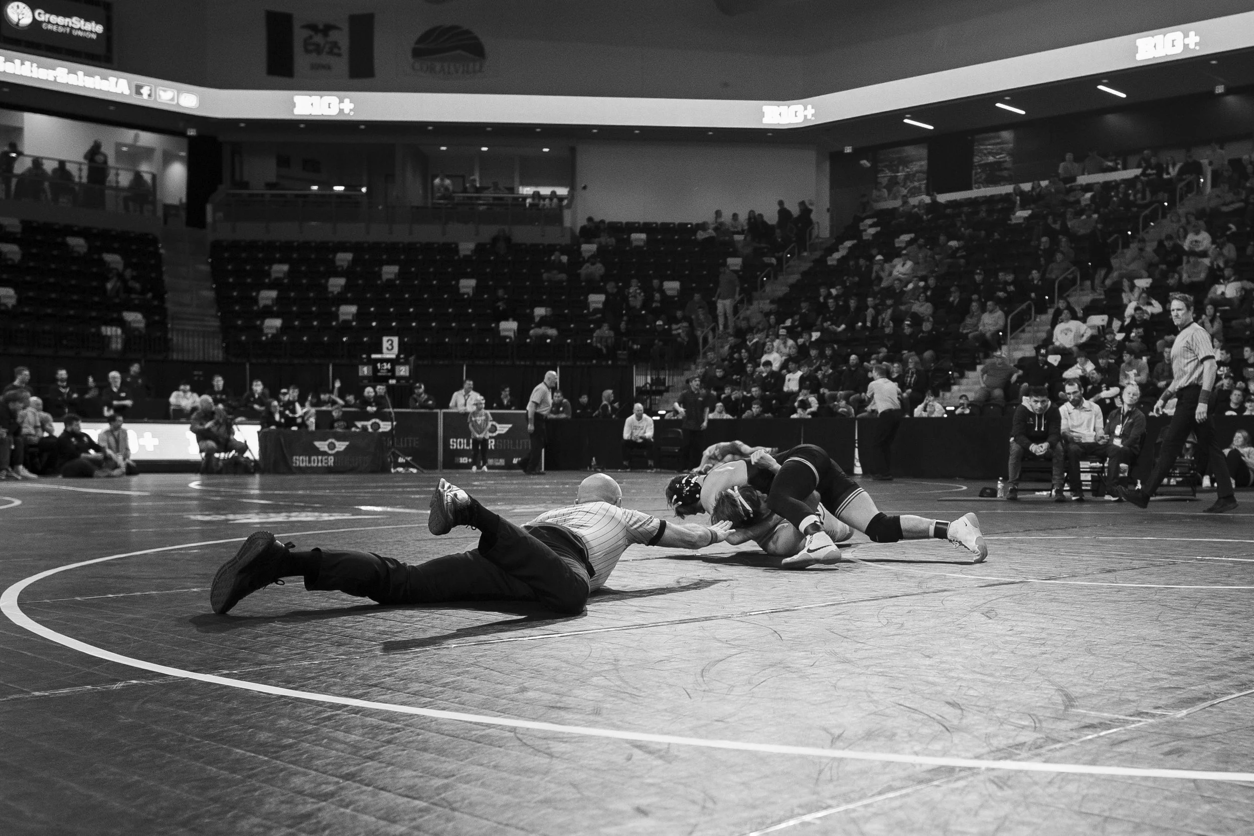 Iowa’s 125-pound Spencer Lee pins Iowa’s unattached wrestler Drake Ayala during day two of the 2022 Soldier Salute College Wrestling Tournament at Xtream Arena in Coralville, Iowa on Friday, Dec. 30, 2022. (Daniel McGregor-Huyer/The Daily Iowan)